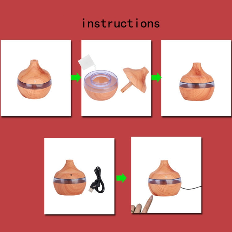 300ML Waterdrop Shape USB Wood Grain Aromatherapy Air Purifier Mute Humidifier