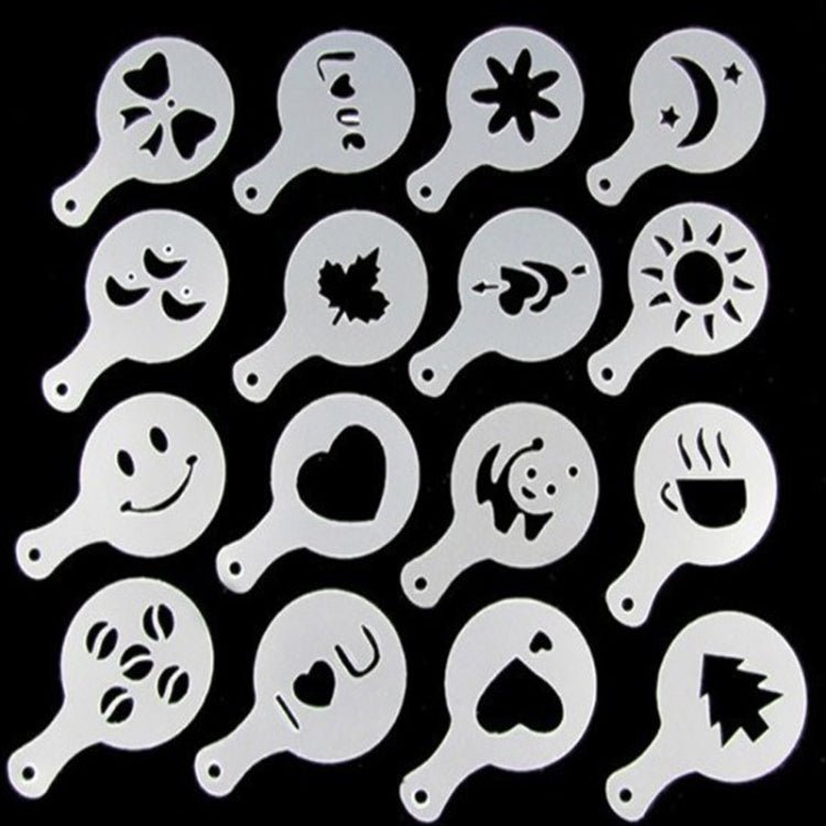 32 PCS Coffee Stencil Filter Coffee Maker Cappuccino Mold Templates Strew Flowers Pad Spray Art Baking Tools