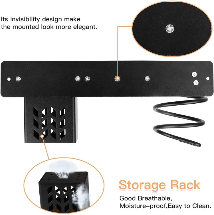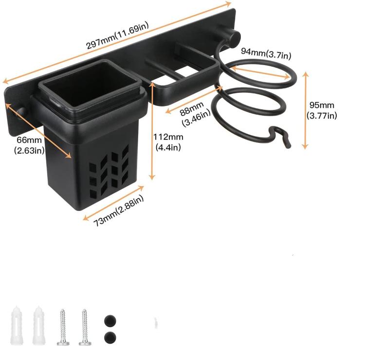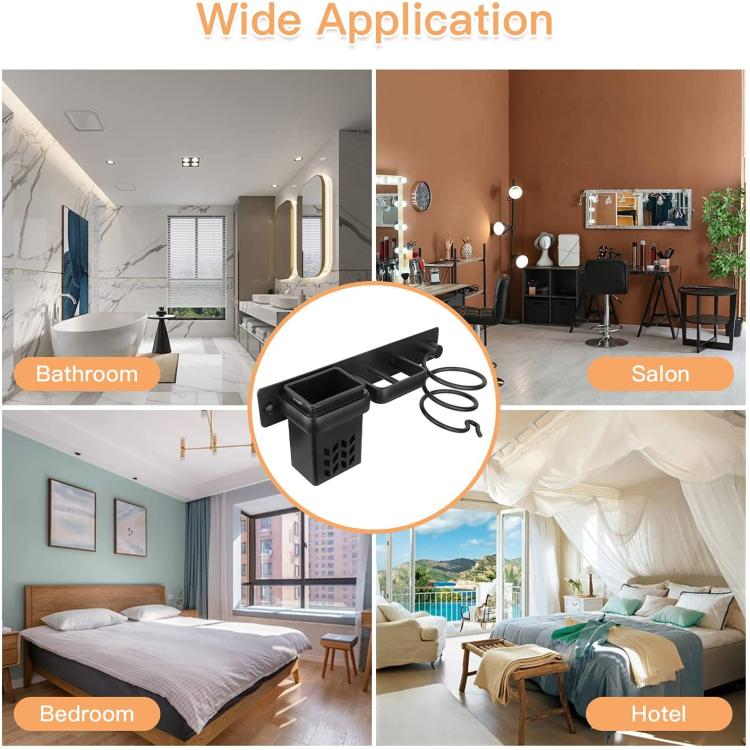 1. This aerospace aluminum wall-mounted organizer is specifically designed as a multi-functional storage solution for hair dryers and straighteners, helping to keep your bathroom countertop clean and organized.