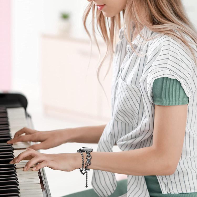 Double Circle Beaded Chain Zinc Alloy Watch Band