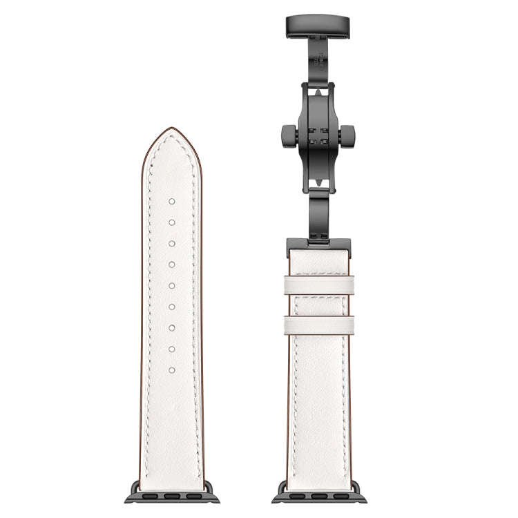 Genuine Leather + Butterfly Black Buckle Replacement Watchbands For Apple Watch Series 6 & SE & 5 & 4 44mm / 3 & 2 & 1 42mm