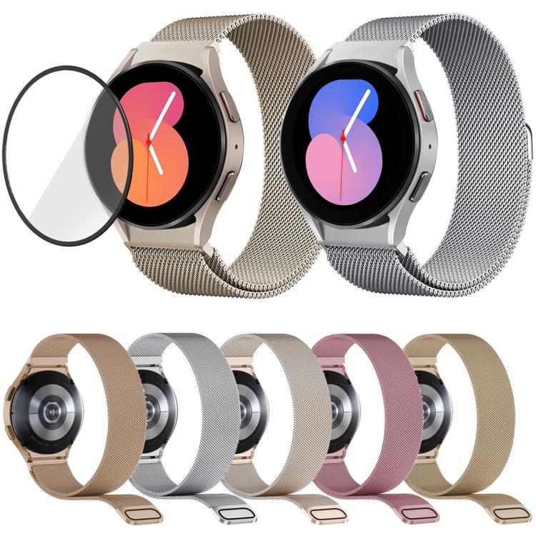 Milanese Magnetic Stainless Steel Watch Band with 3D Curved Film, For Samsung Galaxy Watch6 Classic 43mm, For Samsung Galaxy Watch5 44mm, For Samsung Galaxy Watch5 Pro 45mm, For Samsung Galaxy Watch5 40mm, For Samsung Galaxy Watch4 44mm...