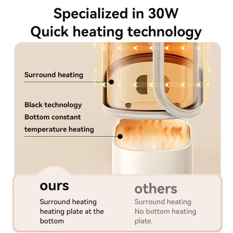 2. 4D Rapid Heating Technology: The four-sided heating layer and bottom heating plate work together to evenly warm liquids, preventing localized overheating.