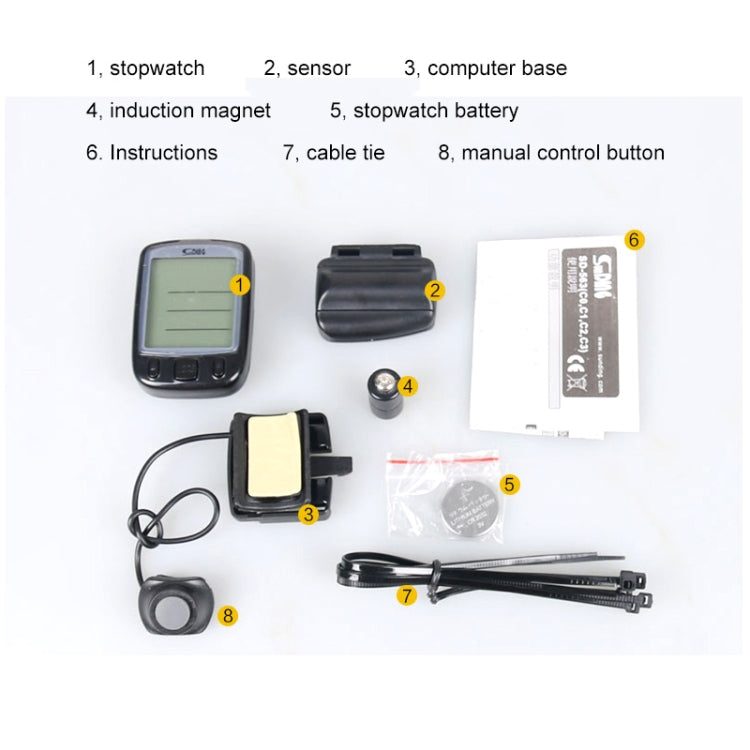 7. Configuration: meter head * 1, table base * 1, wireless transmitter * 1, induction magnet * 1, cable tie * 4, Chinese / English manual * 1, wire control button * 1