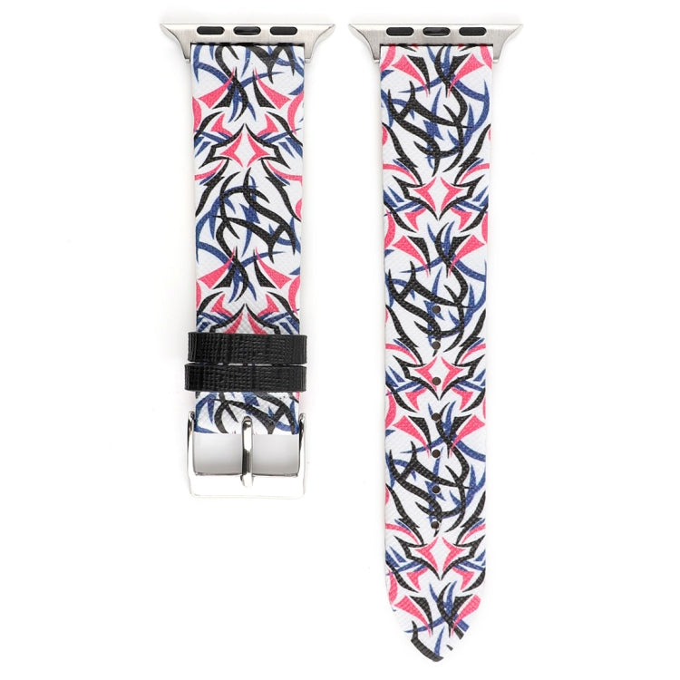 Thorns Printing Genuine Leather Watch Band for Apple Watch Series 10 42mm / 9&8&7 41mm / SE 3&SE 2&6&SE&5&4 40mm / 3&2&1 38mm