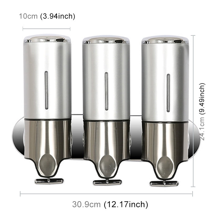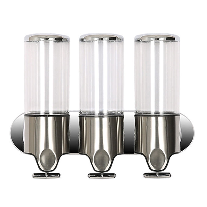 Triple Hotel Shower Manual Dispenser Wall Mounted Washing Liquid Shampoo Soap Bottle, Capacity: 1200ml, 1200ml/Silver, 1200ml/Transparent, 1200ml/White, 1200ml/Black, 1200ml/Gold, 1200ml/Red