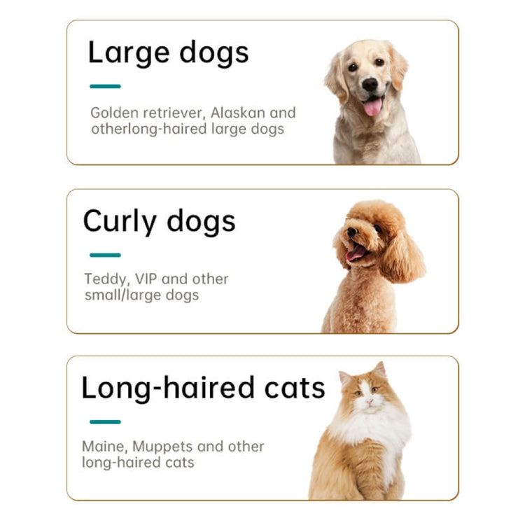 7. Accessories: 6 guide combs, cleaning brush, pet comb, USB charging cable, user manual