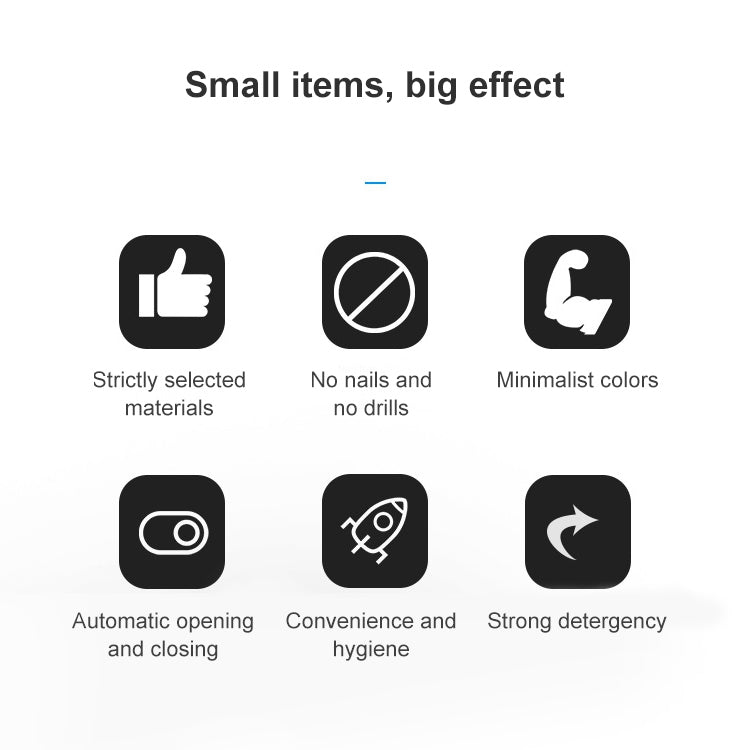 5. Features: automatic opening and closing, nail-free and drill-free, stick-free hair, easy to clean, strong detergency